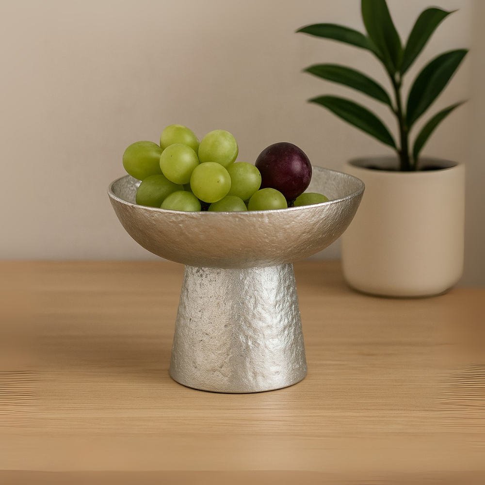 Contemporary Silver Fruit Bowl – Elevated Textured Design for Elegant Serving & Decor